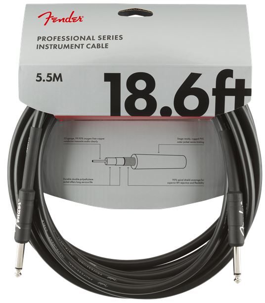 Straight/Straight, 18.6', BlackRoad-reliable and flexible, Fender Professional Series cables boast a thick gauge with high-quality components that transparently retain your tone without getting in the way. Sporting quiet and resilient spiral shielding, these cables are engineered to avoid twisting, kinking and any "physical memory." On stage or in the studio, plug in and play with creative confidence and peace of mind