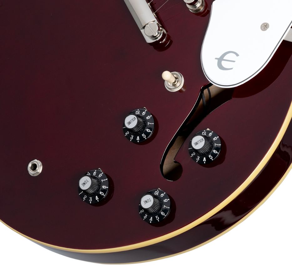• Ovládání: 2x Volume, 2x Tone (CTS Potentiometers, .02 uF Capacitors), 3-cestný přepínač Epiphone Toggle