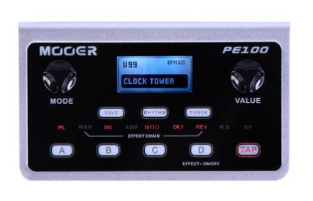 MOOER has re-entered into the realm of portable multi-effects processors. The PE100 is a pocket sized, desktop unit which contains everything the guitarist needs tightly wrapped up within a small sleek shell. A full range of amp models, a myriad of effects and stompboxes, a precision tuner, drum patterns and metronomes. Its dual output jacks make it ideal for connection to amp, hifi, headphones or direct to a mixer or computer for direct recording. Super easy to program, small enough to slip into your pocket and powered by a small DC power adapter or by battery. The PE100 is perfect for the guitarist on the go.